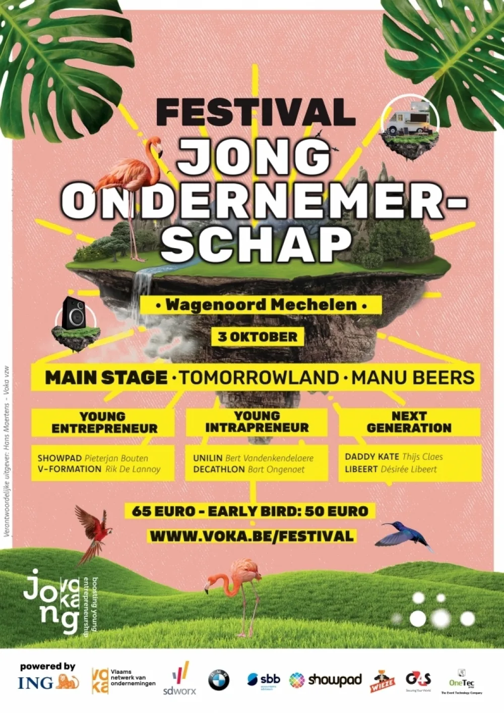 Keynote speaker Manu Beers zal er exclusief met u delen hoe Tomorrowland op enkele jaren tijd tot een echt wereldfenomeen uitgroeide, dat veel méér omvat dan louter muziek maar festivalgangers van over de hele wereld onderdompelt in een ongeëvenaarde belevenis. En er staat nog meer inspirerends op het programma van het Festival van het Jong Ondernemerschap 2018: naast Manu Beers zullen nog een reeks andere jonge ondernemers hun ervaringen delen. Deelnemers kunnen kiezen uit drie break-out sessies: young entrepreneur, young intrapreneur en next generation.
